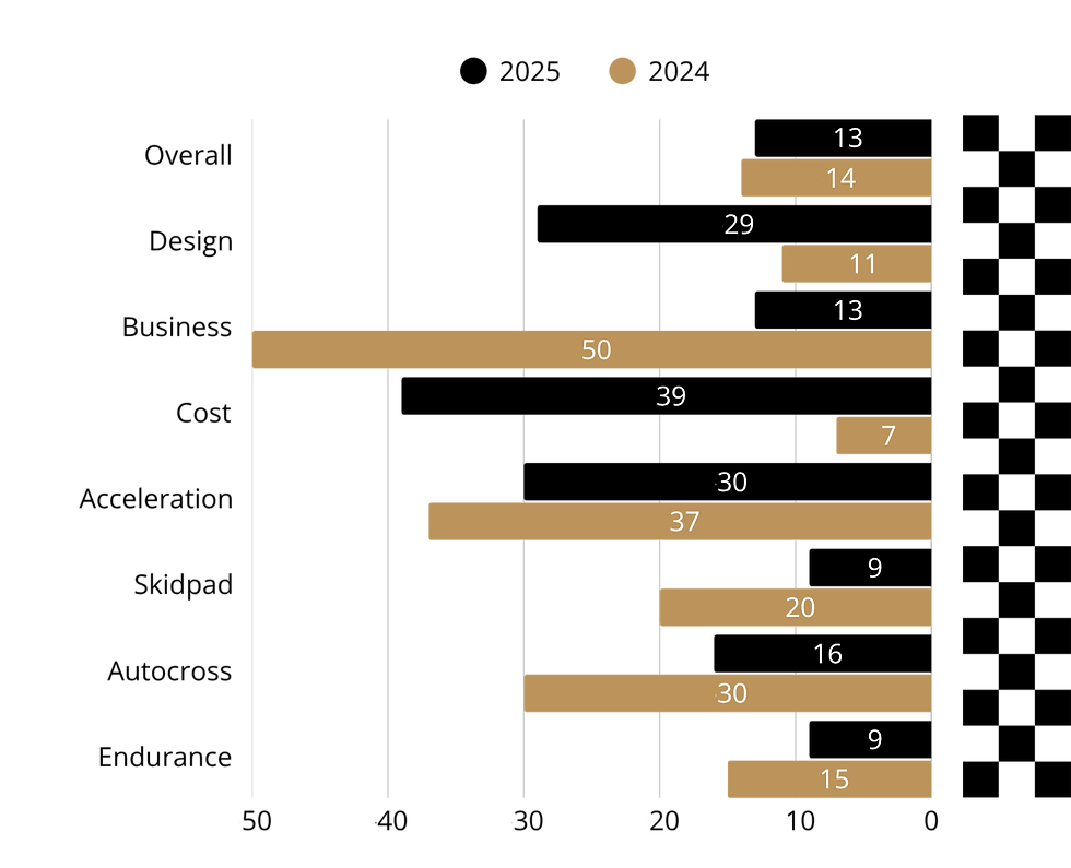 Grizzlies Racing is proud to announce an outstanding performance at the 2025 Formula SAE competition held at Michigan International Speedway! Out of 121 teams from around the world, we placed an impressive 13th overall.
